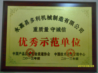 永嘉縣多利機(jī)械制造有限公司 重質(zhì)量 守誠(chéng)信 優(yōu)秀示范單位